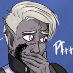 Panel 1: Ferris continues what he was saying from the last page, smiling with confidence as he bodly states, "I thought he had purely responsible debaucherous intentions at the time." Szelek covers his mouth to hide his smile and hold back his laughter, but his eyes are shining with humor at Ferris' idiocy. There's some laughter FX and a side thought from Szelek "You sweet summer child..."